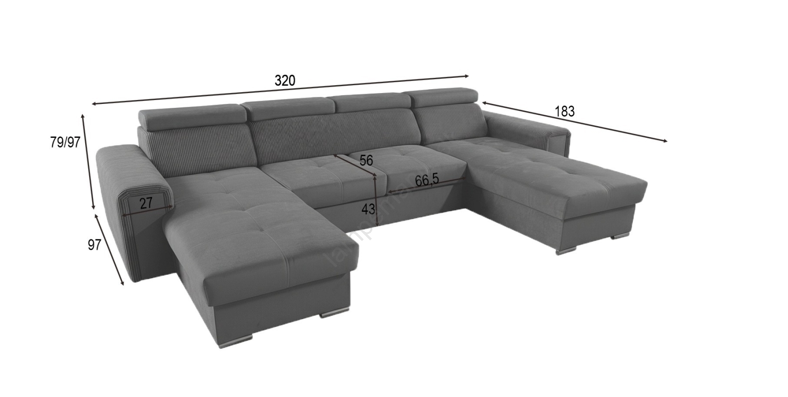 • U-formet sovesofa med universelt U-hjørne og opbevaringsrum SALVADA mørkegrå