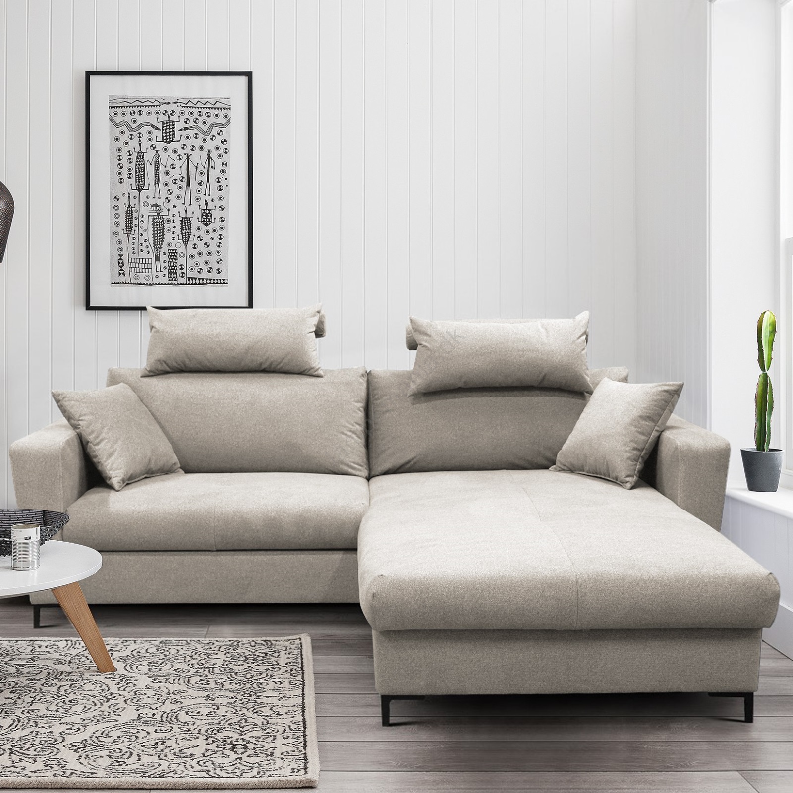 • Højrevendt L-formet hjørnesofa med sovefunktion og opbevaring HORTA, grå