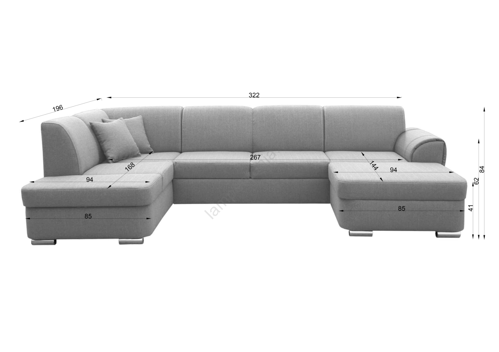 • U-formet hjørnesofa med sovefunktion og opbevaring SERPA, højrevendt, grå