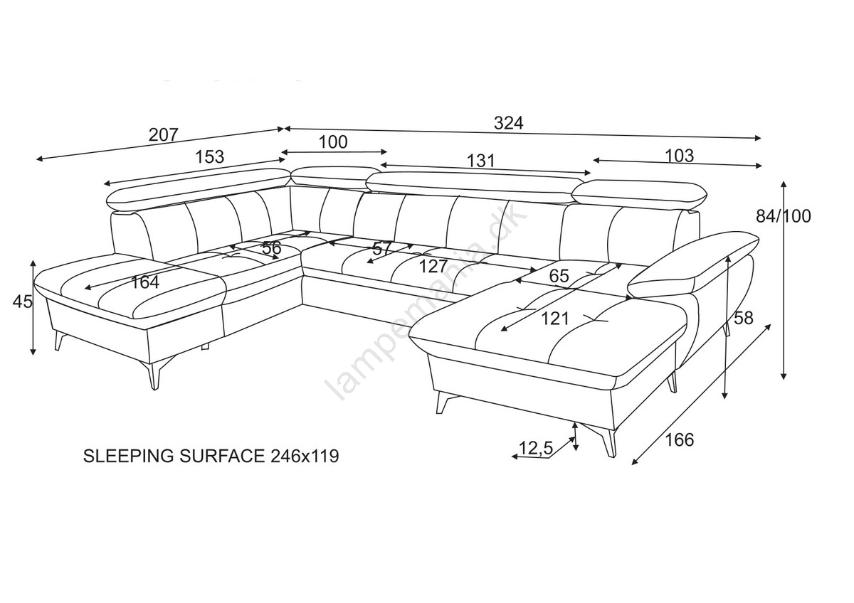 • Moderne U-formet sofa (venstre hjørne) er det ideelle valg til rummelige og stilfulde stuer.