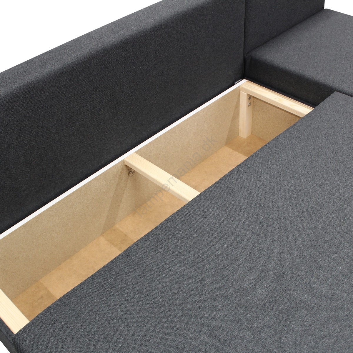 • Sofaen har et rummeligt opbevaringsrum til sengelinned og andre sæsonbestemte ting.