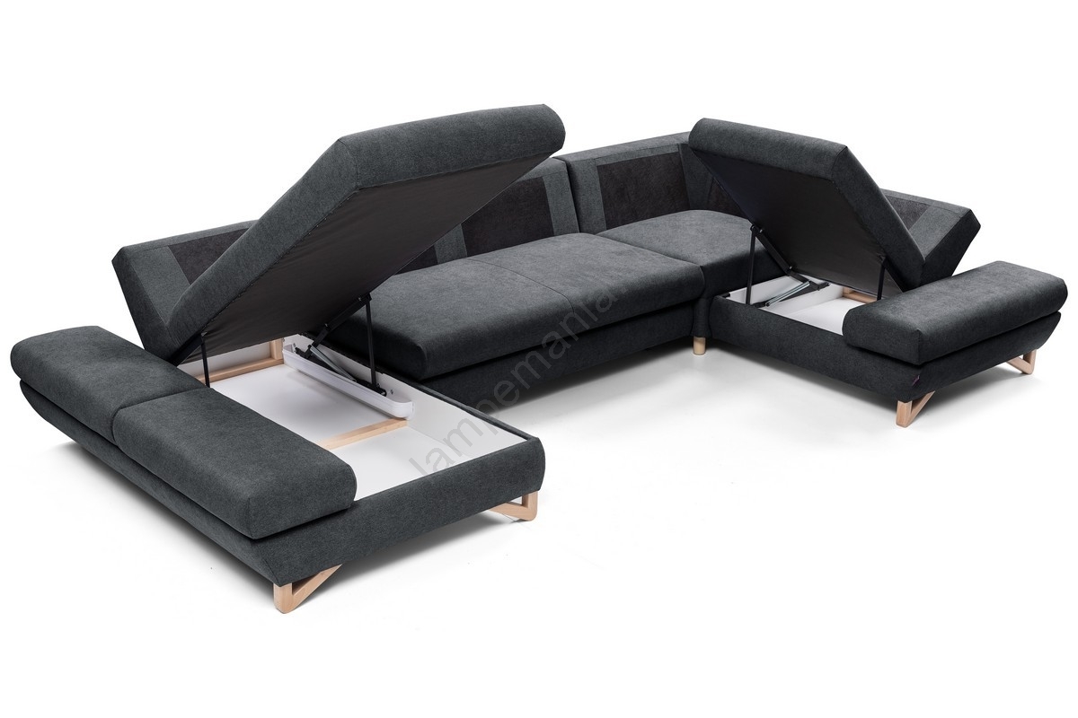 • U-formet udtrækbar hjørnesofa med opbevaringsplads AVESTA antracit