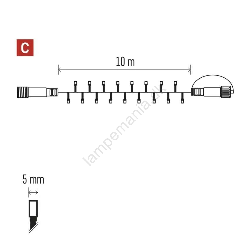 • LED udendørs lyskæde, 100 LED, 10 m, IP44, blå