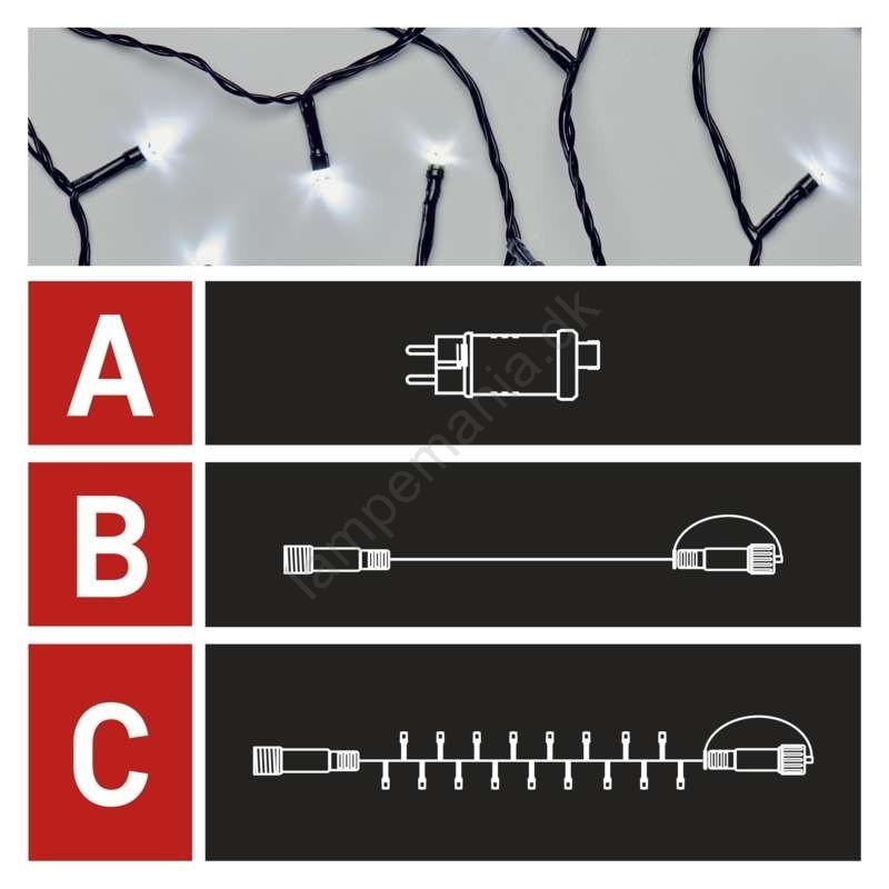 • Udendørs LED lyskæde 100xLED/15 m IP44 kold hvid