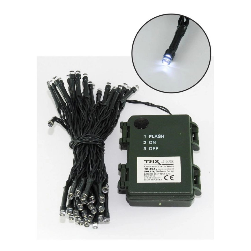 Udendørs LED lyskæde 50xLED/2 funktioner 5,4 m IP44 kold hvid