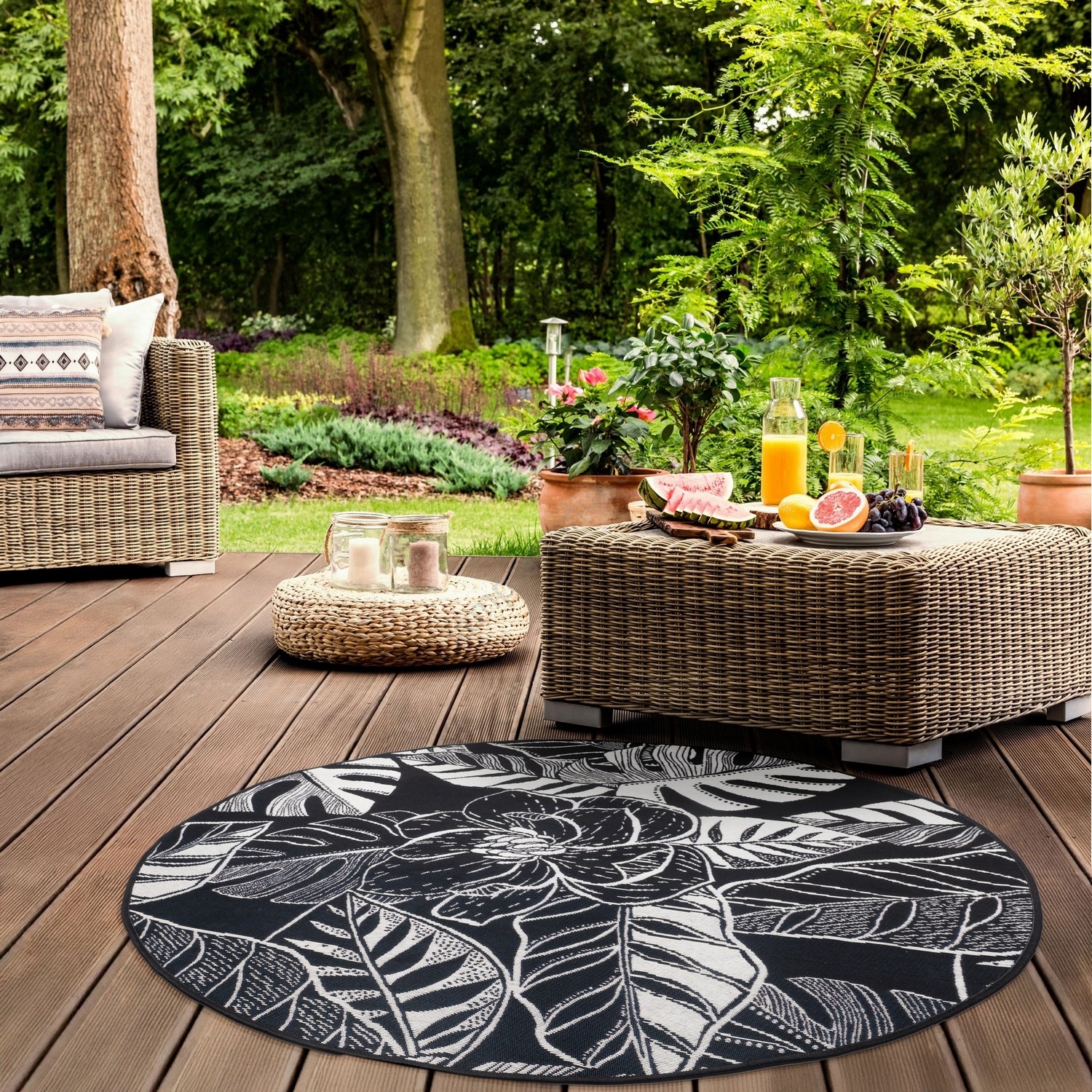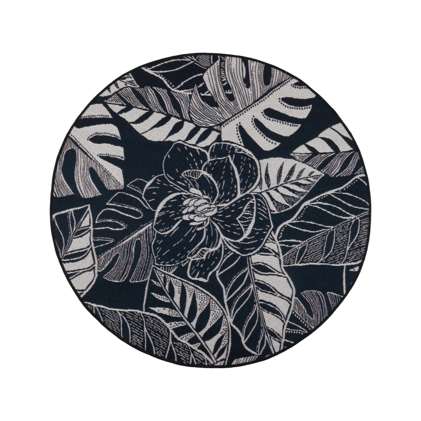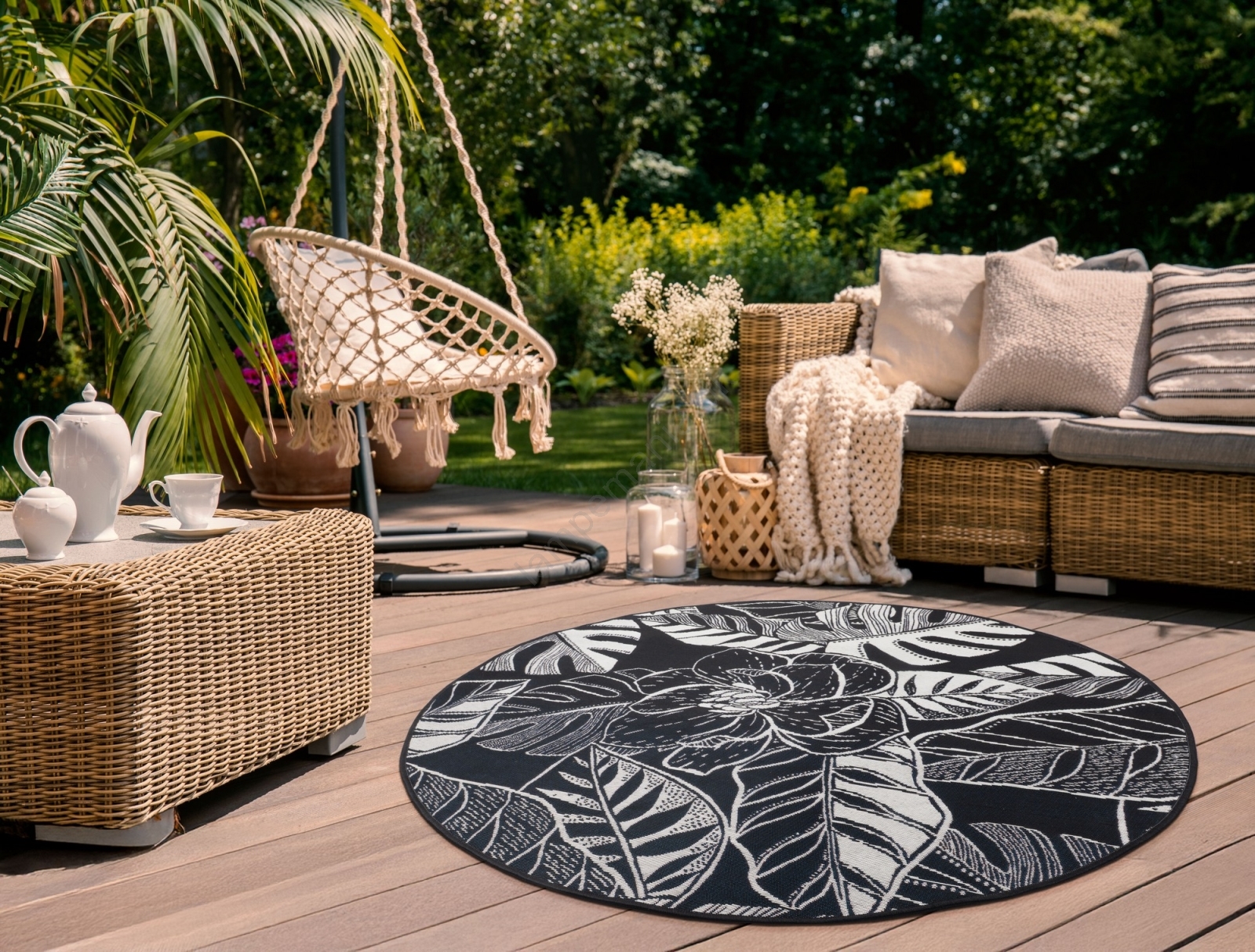 Udendørs tæppe JUNGLE 135 cm, sort/hvid, bladmønster