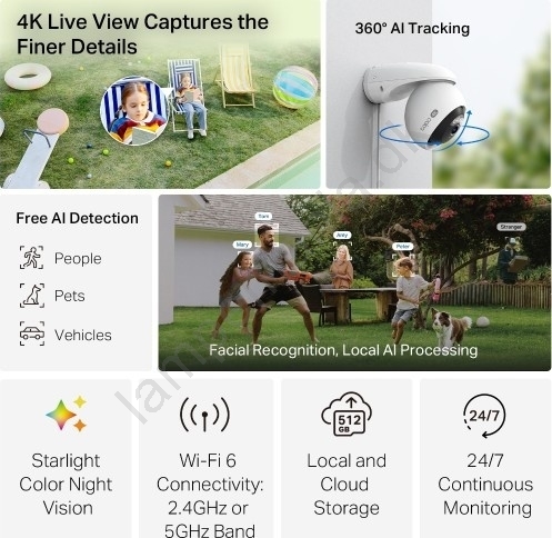 • Kameraet kan intelligent genkende personer, dyr og køretøjer ved hjælp af lokal AI-teknologi, hvilket reducerer unødvendige alarmer.