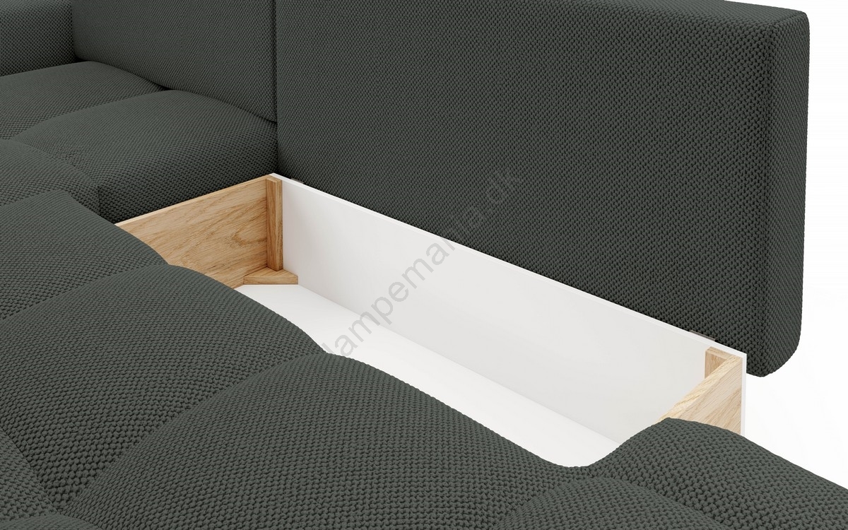 • Sofaen har et rummeligt opbevaringsrum til opbevaring af sengetøj og andre sæsonartikler.
