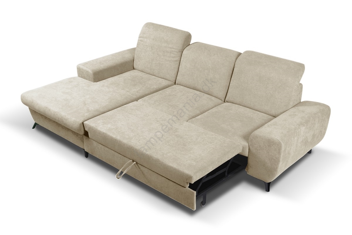 ALTA L-formet polstret sovesofa med opbevaringsrum, venstrevendt, beige