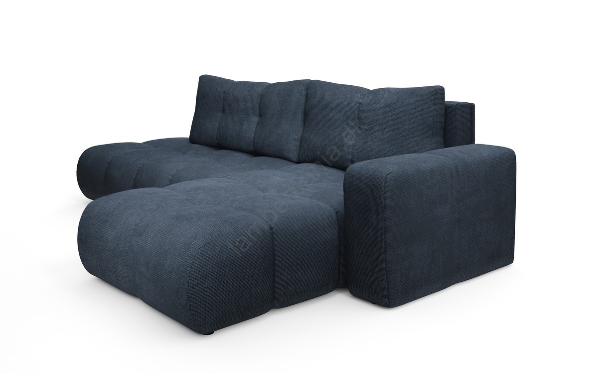 • Udtrækbar venstrevendt L-formet polstret hjørnesofa med opbevaring ALMADA, blå