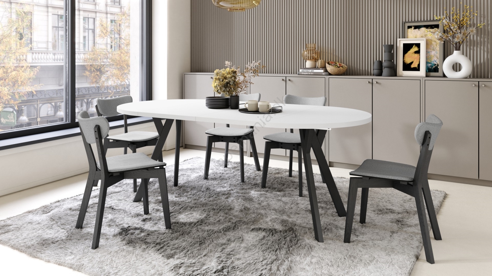 • Udtrækbart spisebord ARTUR hvid/sort