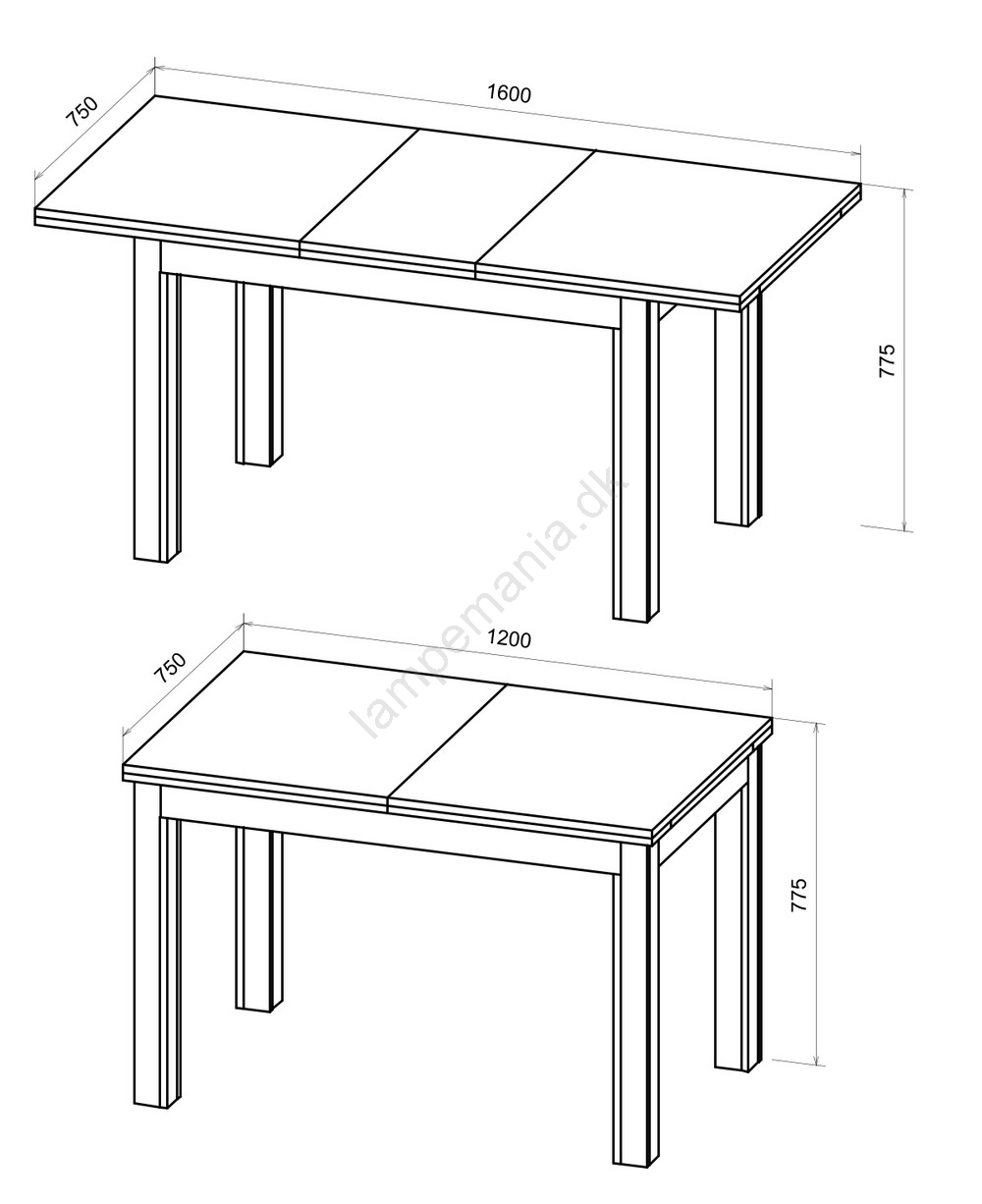 • Mål når bordet er udfoldet: 160 x 75 cm.