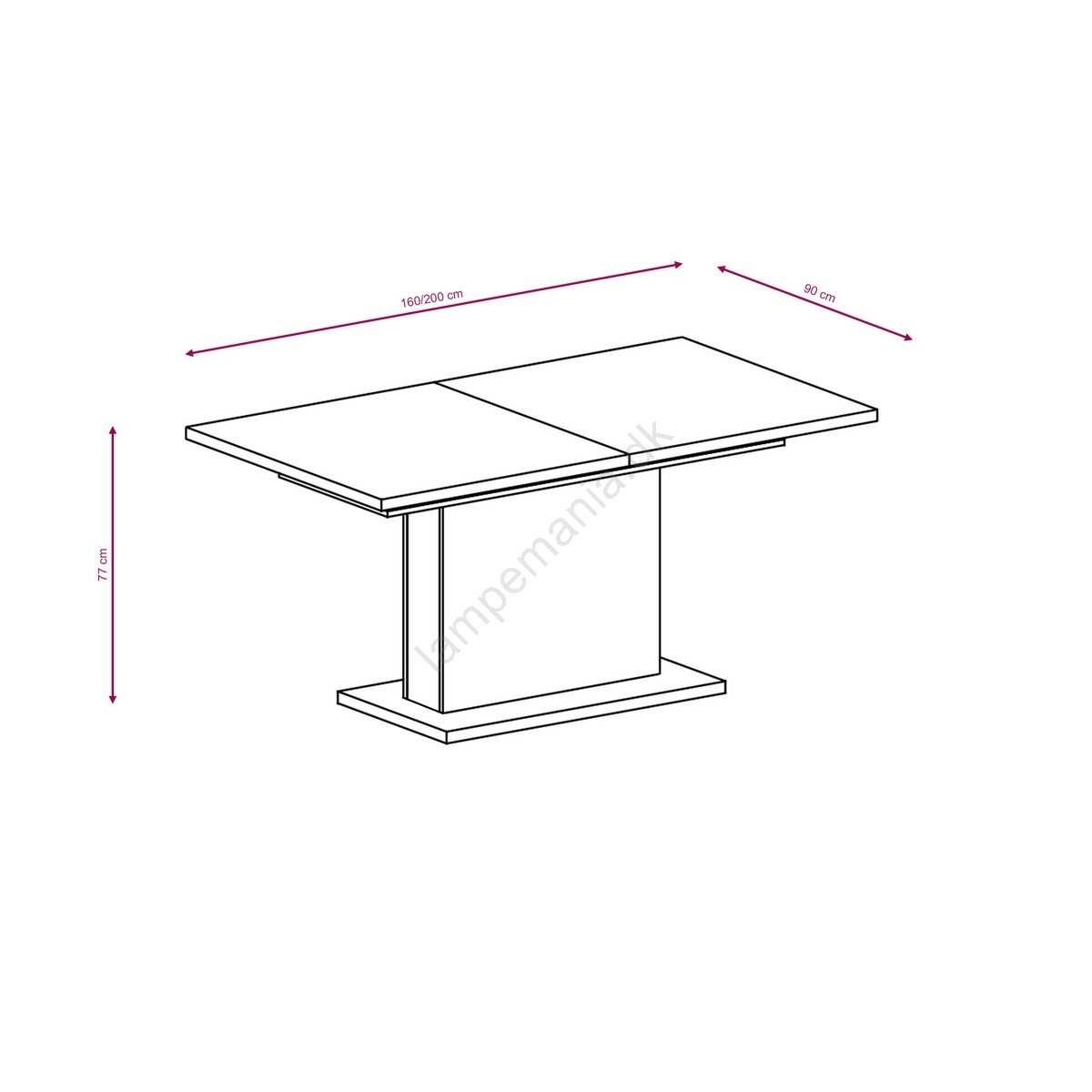 • Den har en solid bordplade understøttet af en bred central fod, som hviler på en rektangulær bundplade for øget stabilitet.