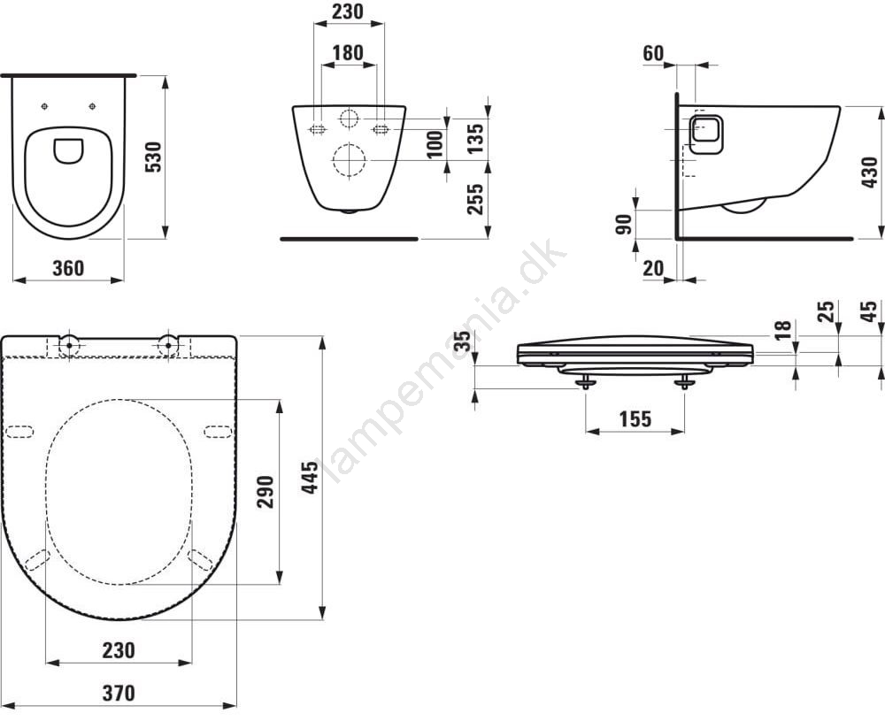 Vægmonteret toilet PRO + toiletbræt SoftClose PRO + skylleknap DUAL LIS + indbygningsmodul + isoleringsmåtte