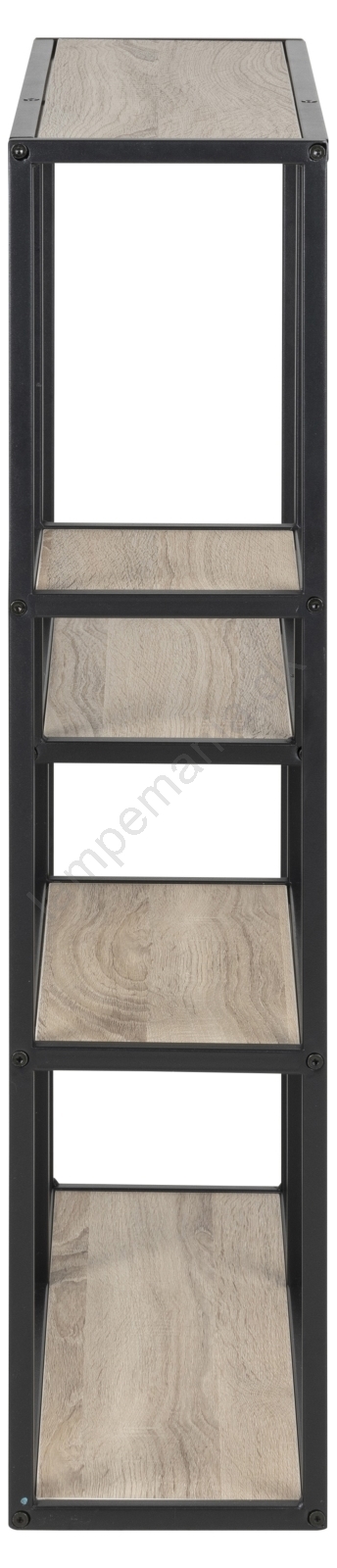 • Ramme i mat sort pulverlakeret stål, 3 hylder i sonoma eg med asymmetriske detaljer.