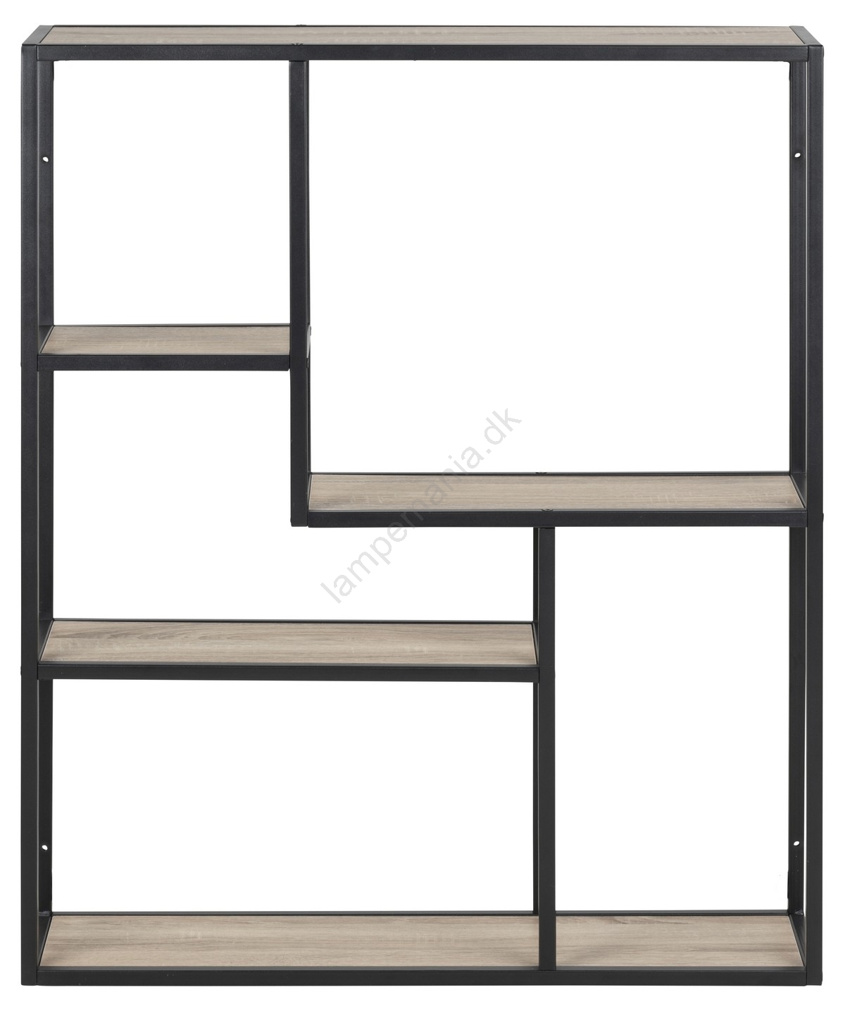 • Ramme i mat sort pulverlakeret stål, 3 hylder af Sonoma-eg med asymmetriske detaljer.