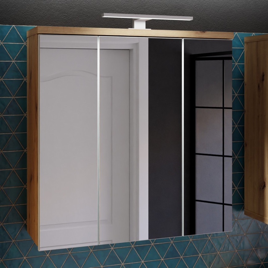 Væghængt badeværelsesskab med spejl VENOM, hvid/artisan-eg