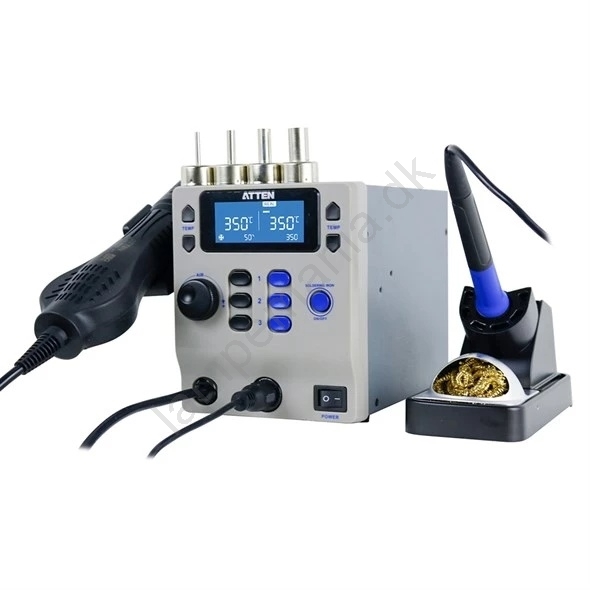 • Professionel servicestation, der kombinerer varmlufts- og loddeenhed i ét apparat.