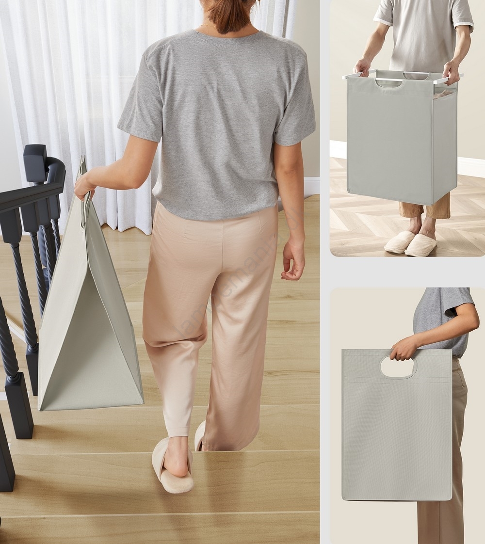 • Træk stofposen ud, åbn velcro-lukningerne, tag vasketøjsposen ud og bær den nemt til vaskemaskinen.