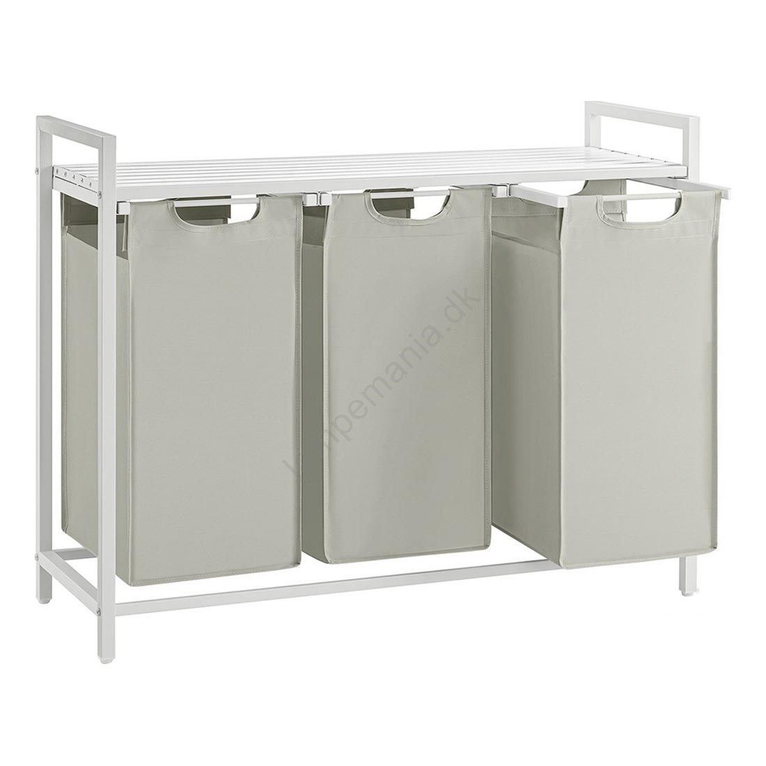 • 3 poser, 1 hylde – Sorter dit vasketøj i tre stofposer (38 l pr. pose) og placer vaskemidler, skyllemiddel og andre ting på hylden.