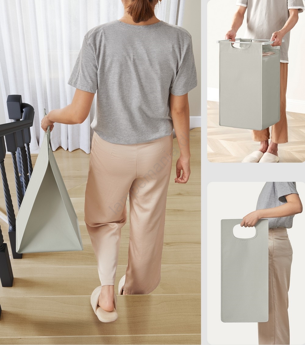 • Træk stofposerne ud, åbn velcro-lukningerne, tag poserne med vasketøj ud og bær dem nemt til vaskemaskinen.
