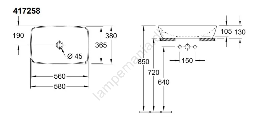 • Villeroy & Boch 417258R1 - Håndvask til bordplade ARTIS 58 x 38,5 cm keramik/hvid