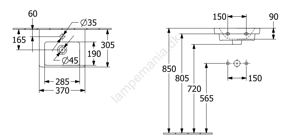 Villeroy & Boch 43703701 - Væghængt håndvask SUBWAY 37x30,5 cm keramik/hvid