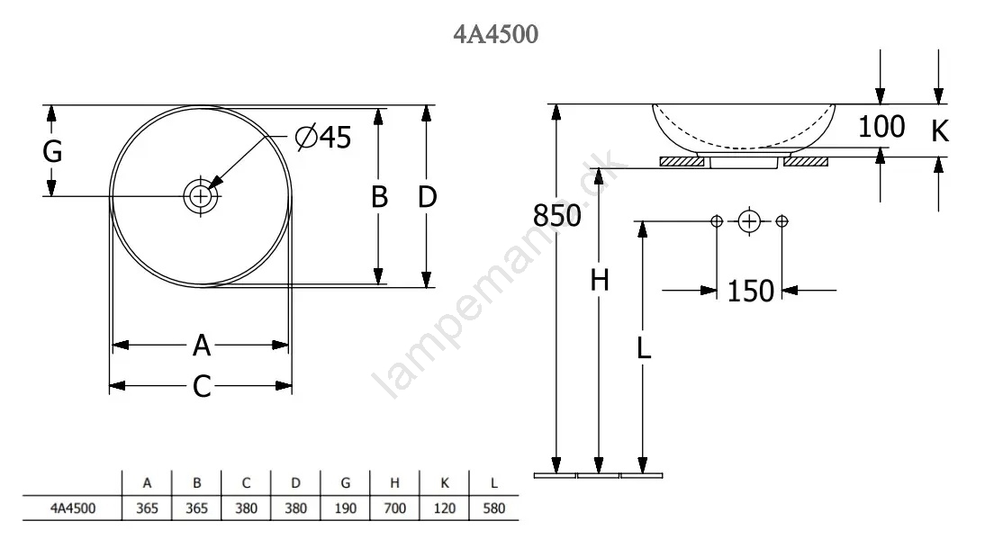 Villeroy & Boch 4A450001 - Håndvask til bordplade LOOP&FRIENDS Ø 38 cm keramik/hvid