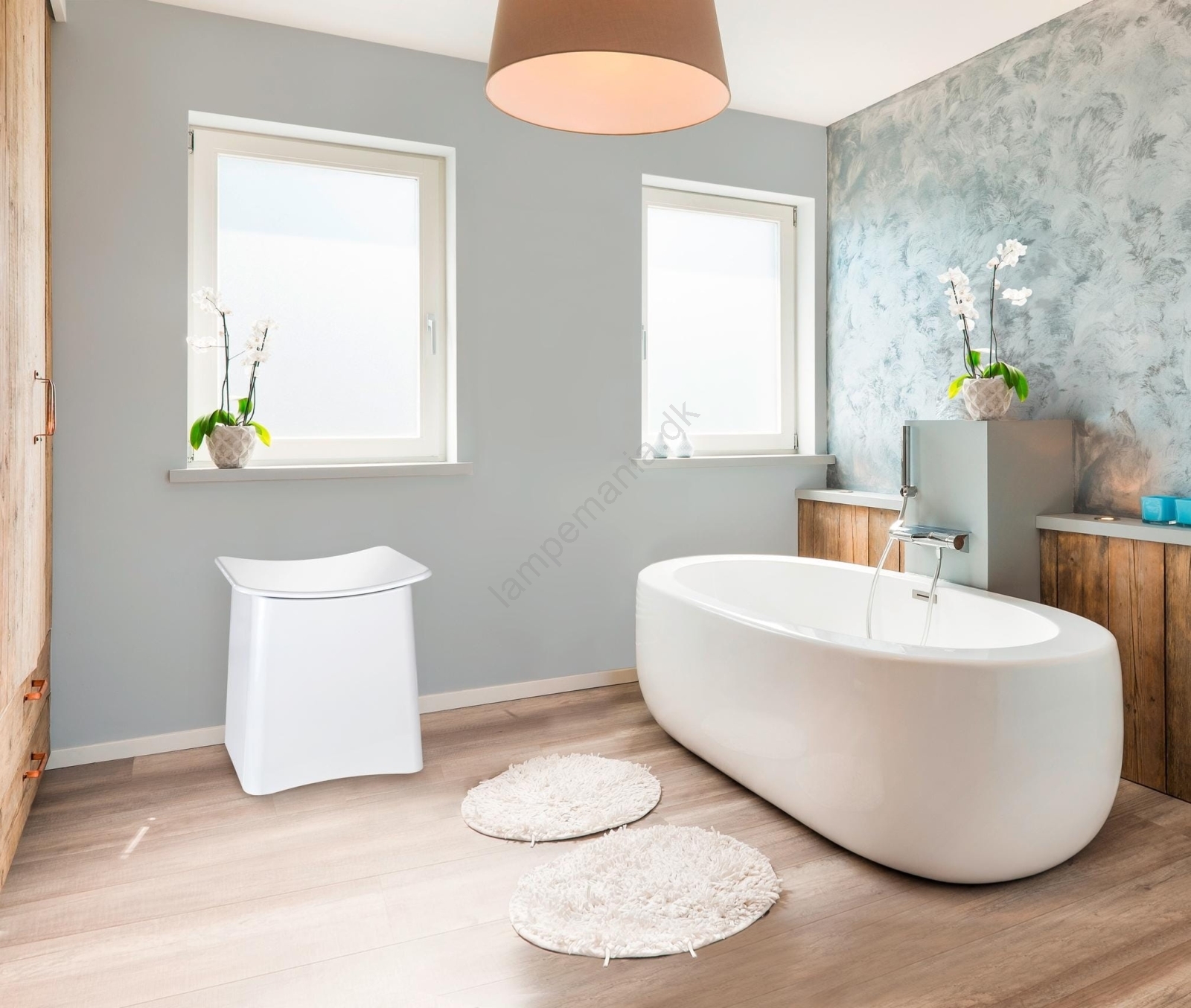 • Stilfuld badeværelsesskammel med buet, moderne design.
