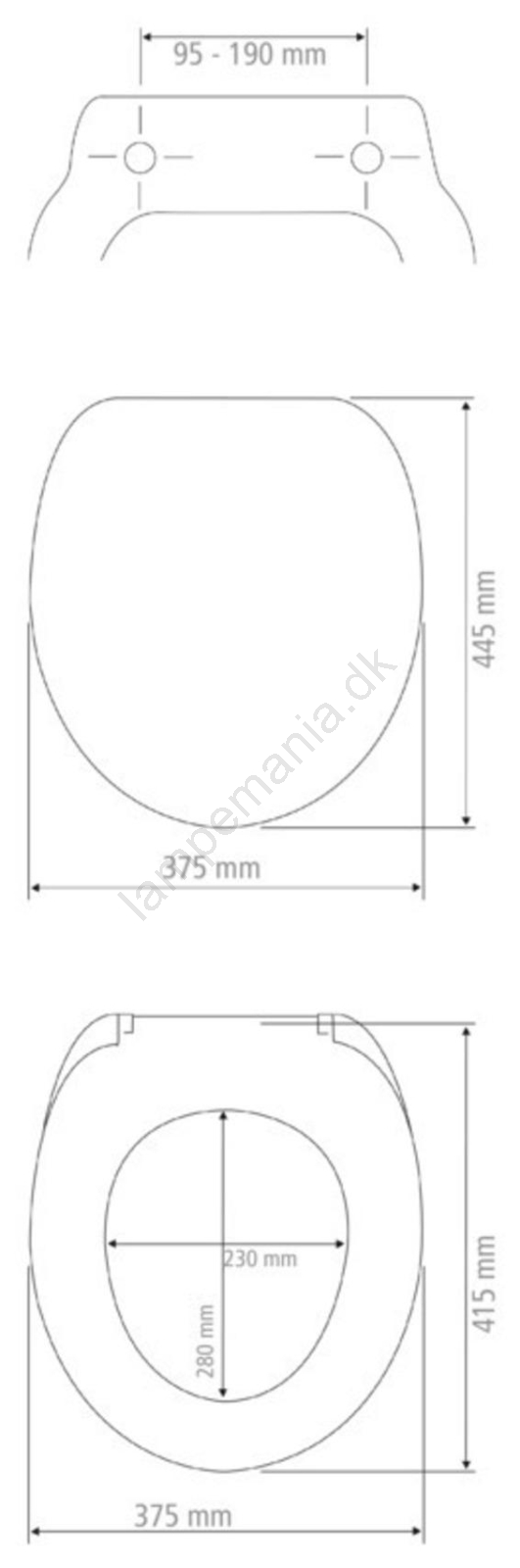 • Ergonomiske mål: låg 37,5 × 44,5 cm, ydre ring 37,5 × 41,5 cm.
