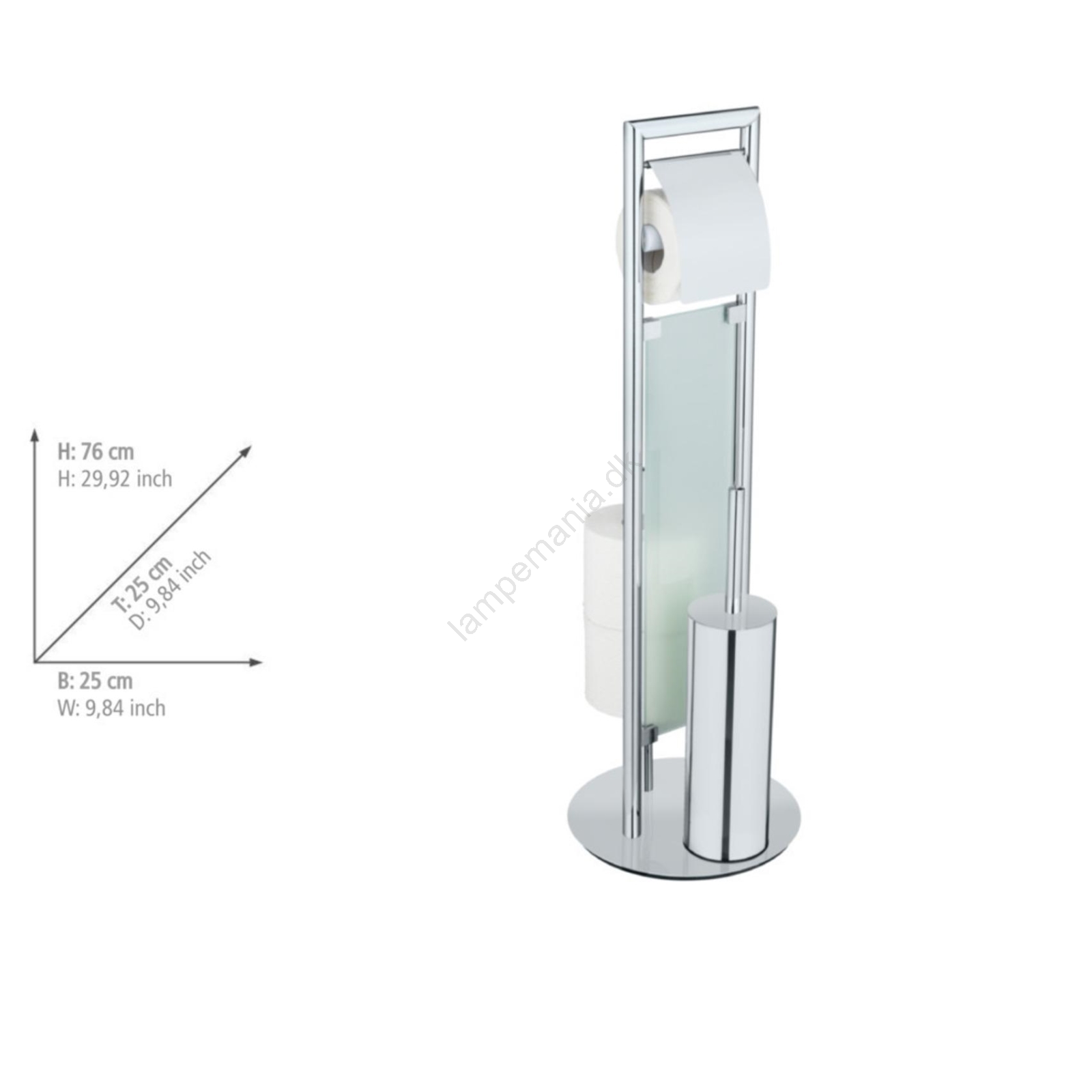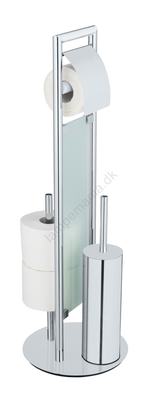 • Kombinerer en toiletbørste med lukket beholder, en holder til toiletpapir og en beholder til ekstra ruller.