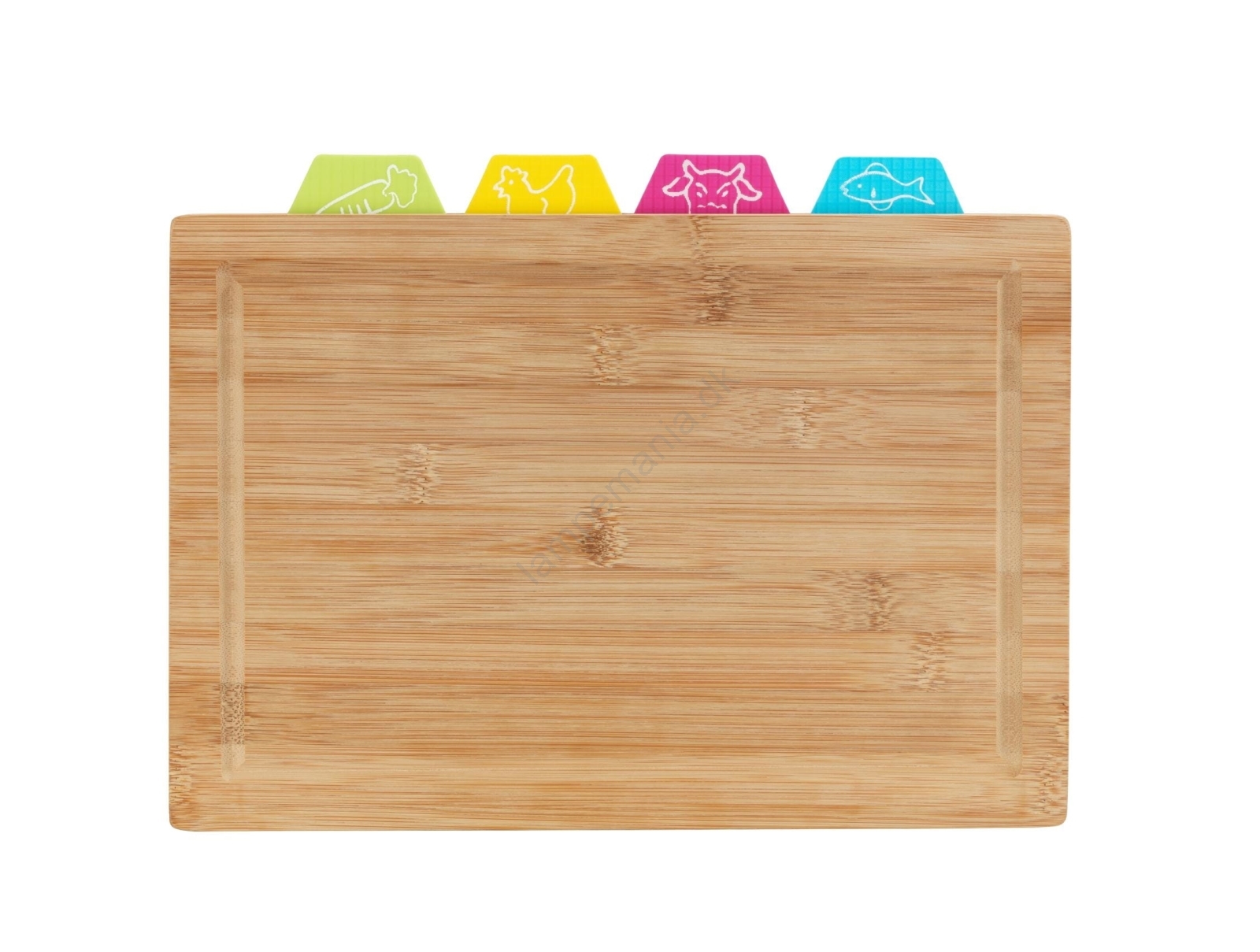 • Praktisk bambusbræt med rille langs kanten til opsamling af saft.