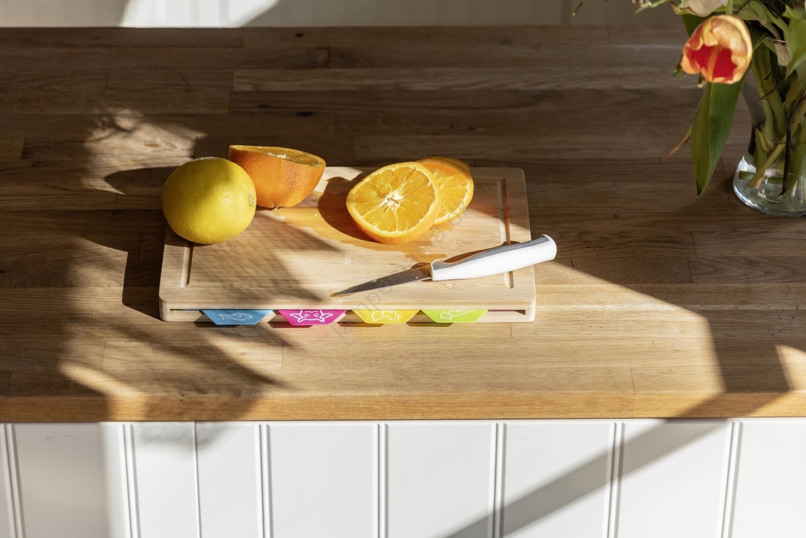 • Materiale, der skåner knivens æg og er miljømæssigt bæredygtigt takket være hurtigt fornybart bambus.