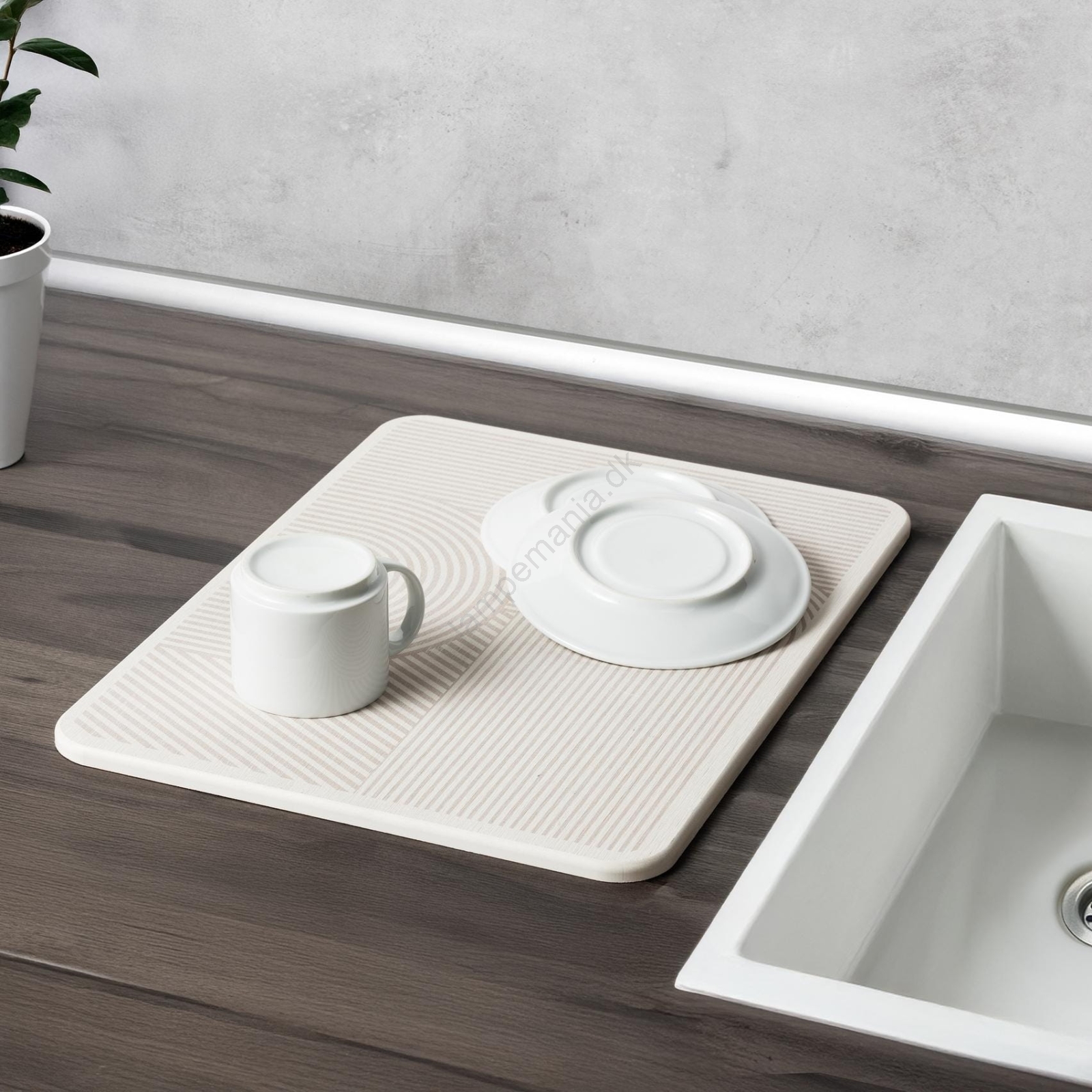 • Stilfuld afdrypningsmåtte i naturlig diatomit i beige.