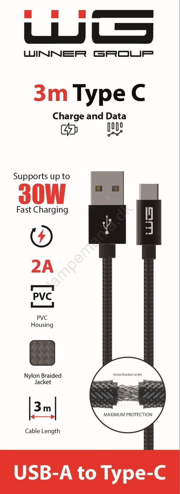 Winner Group - USB-kabel USB-C / USB-A 30 W 3 m sort