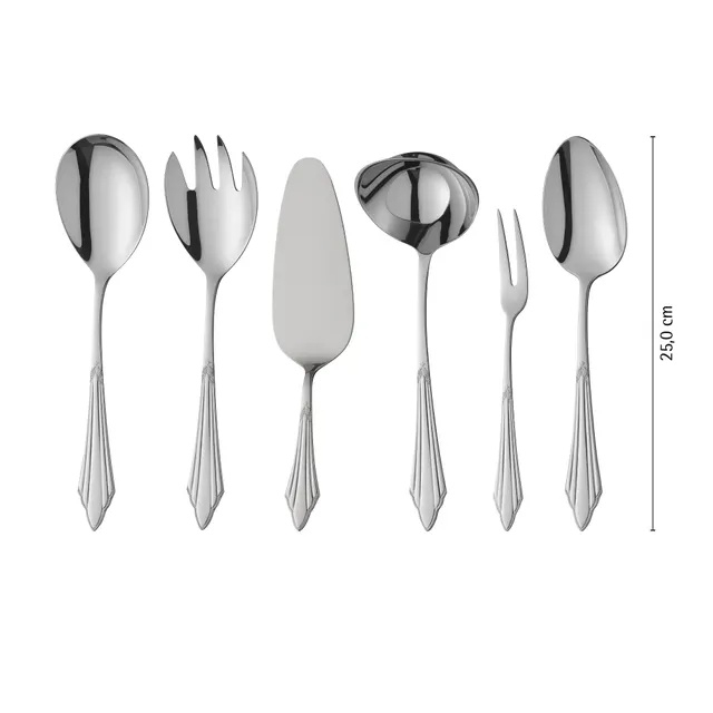 • Komplet bestiksæt til 12 personer – 66 dele omfatter både standardbestik og serveringstilbehør.