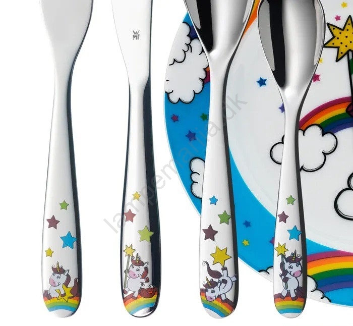 • Sættet er egnet til børn fra 3 år og er fremstillet af porcelæn og det eksklusive, patenterede materiale Cromargan fra WMF (rustfrit stål 18/10).