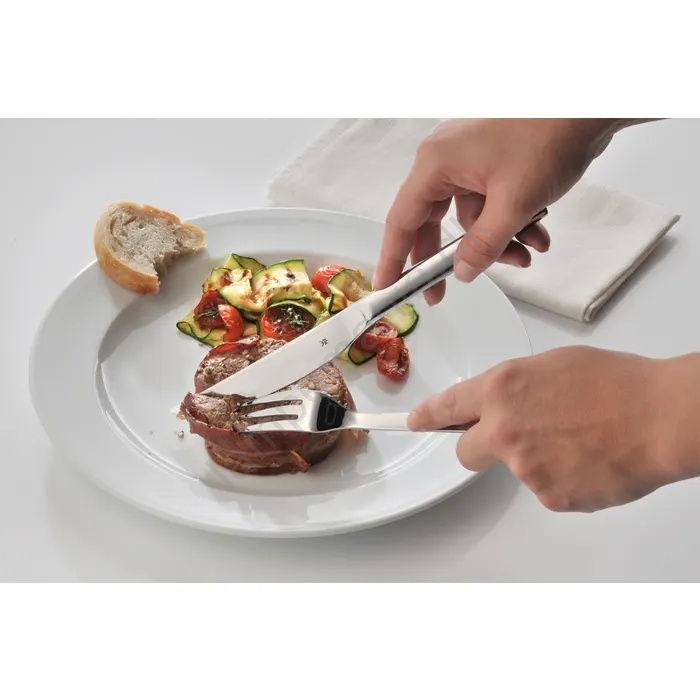 • Knivene har en takket klinge af førsteklasses Cromargan® 18/10 rustfrit stål, der nemt skærer igennem selv sprød kødskorpe.