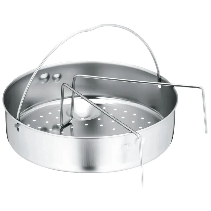 • Dampindsats til trykkogere med en diameter på 22 cm – gør det muligt at dampe grøntsager og fisk skånsomt samt at sterilisere.