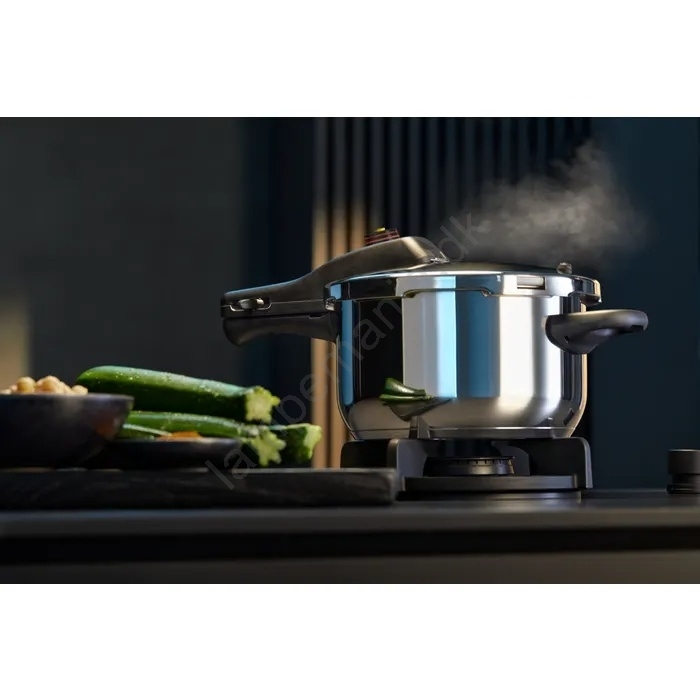 • 2-delers trykkogersæt – kapaciteter på 6,5 l og 3 l – til fleksibel tilberedning af både større og mindre retter.