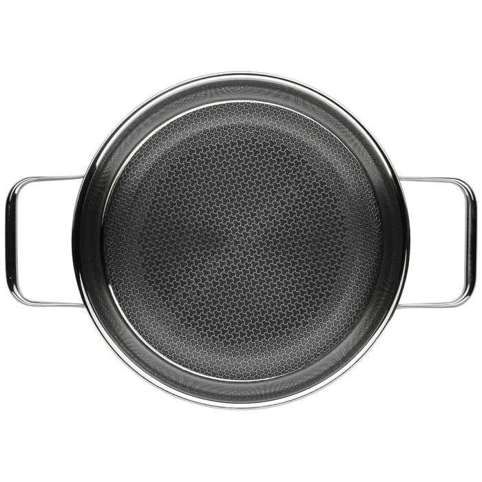 • Håndtag med varmebegrænsning: Det hule håndtag reducerer varmeoverførslen fra panden (ved brug på kogepladen), så det forbliver køligere at røre ved.
