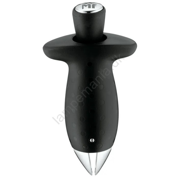 • Brugen er meget enkel – tryk på knappen øverst på håndtaget, før det rustfri stålgreb hen til stilken og slip knappen.