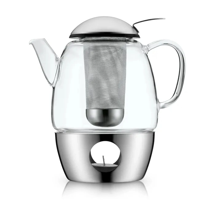 • Sættet består af en tekande på ca. 1 liter, et udtageligt tefilter og en telysvarmer i rustfrit stål.