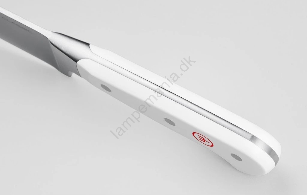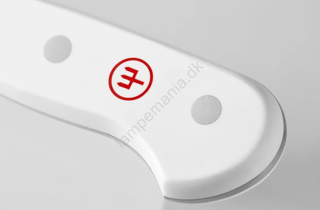 • Håndtaget er lavet af POM (syntetisk materiale), er hvidt og modstandsdygtigt over for misfarvning og er fastgjort med tre nitter i rustfrit stål.