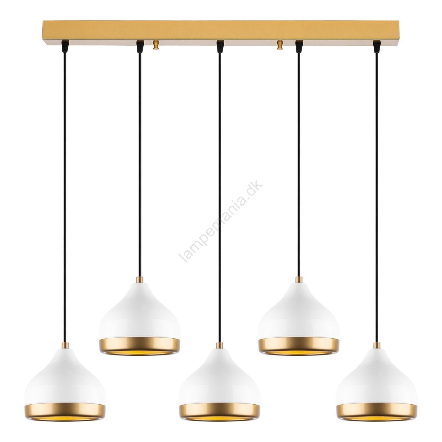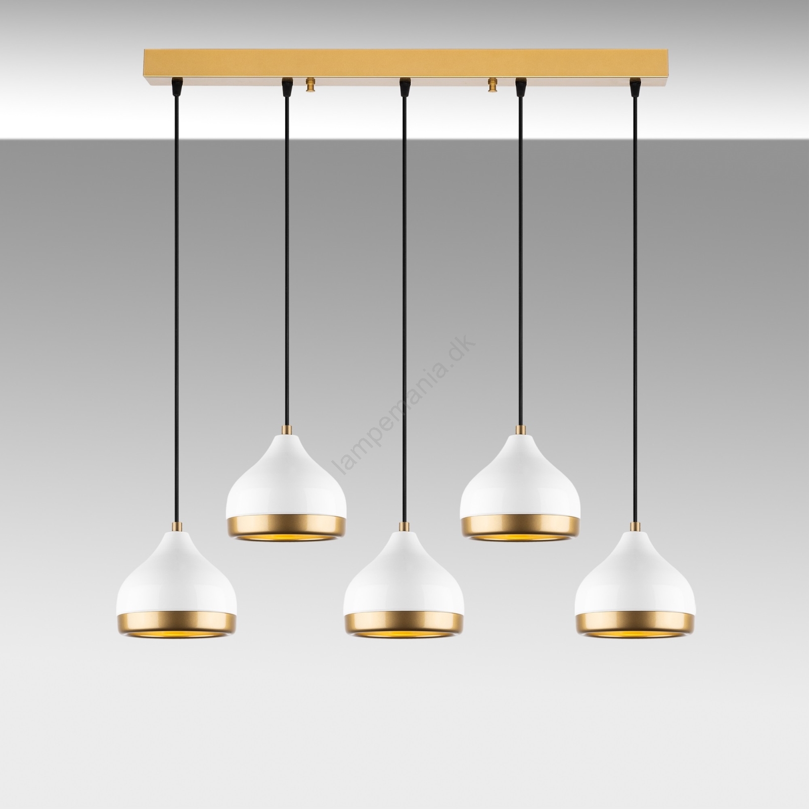 Pendellampe på kabel YILDO 5xE27/40W/230V hvid/guld er kendetegnet ved et flot og funktionelt design.  En lyspære med E27-fatning passer til denne lampe. Her kan du købe andre pærer til fordelagtige priser. Du får en interessant tilføjelse til dit hjem.