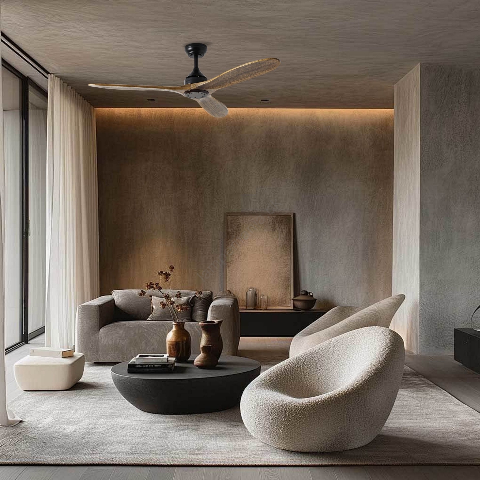 ZEVENTI - Loftventilator LAURIA Wi-Fi Tuya sort/eg + fjernbetjening