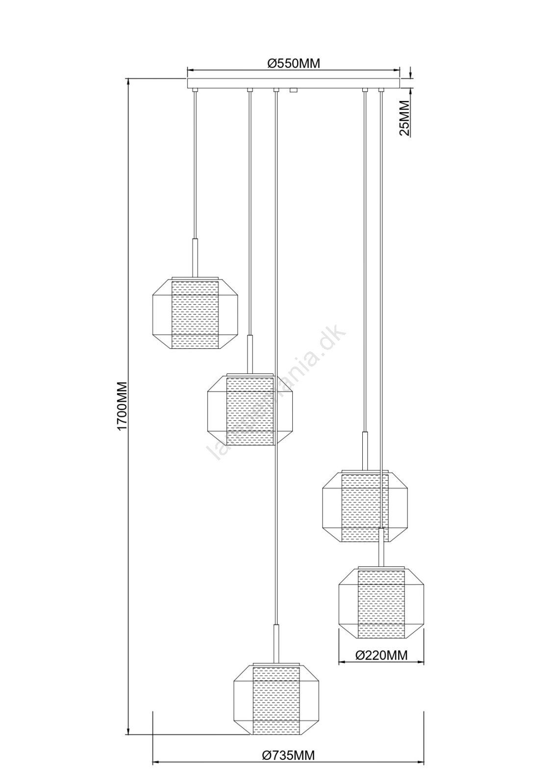 Zuma Line - 5-armet pendel med kabelophæng, 5xE27/25W/230V, Ø 73 cm, guld/sort er kendetegnet ved et flot og funktionelt design.  En lyspære med E27-fatning passer til denne lampe. Her kan du købe andre pærer til fordelagtige priser. Du får en interessant tilføjelse til dit hjem.