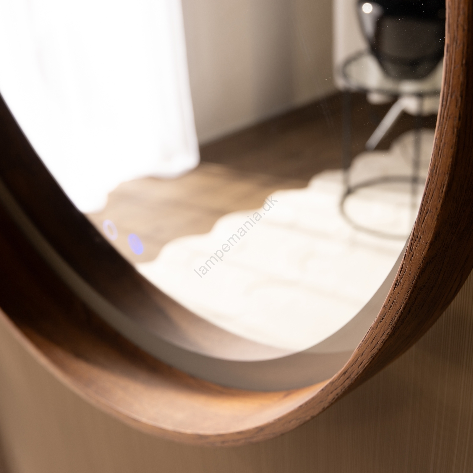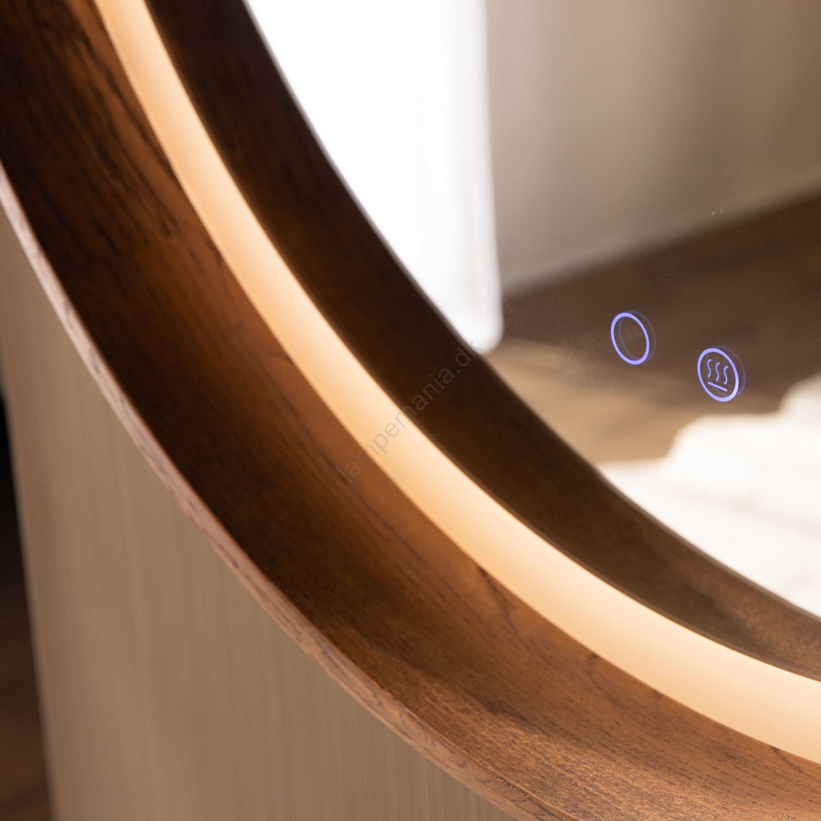 Zuma Line - LED opvarmet vægmonteret badeværelsesspejl med bagbelysning, 36 W, 230 V, 3000/4000/6000 K, Ø 80 cm, IP44, eg